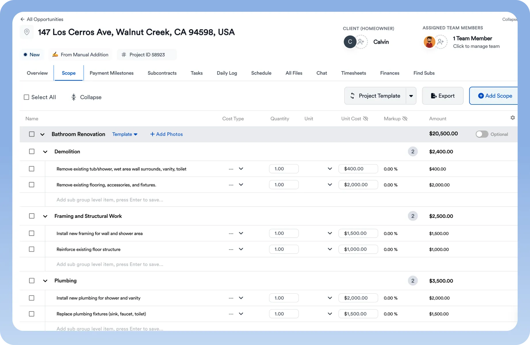When estimates flow directly into project execution, you’re no longer relying on memory to carry details forward. The information is already there, tied to the job.