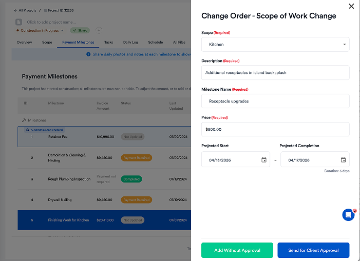 And when that drift happens, which is pretty common, you can stay on top of it using construction change orders–surfacing the increase in cost, getting approval, and moving on.