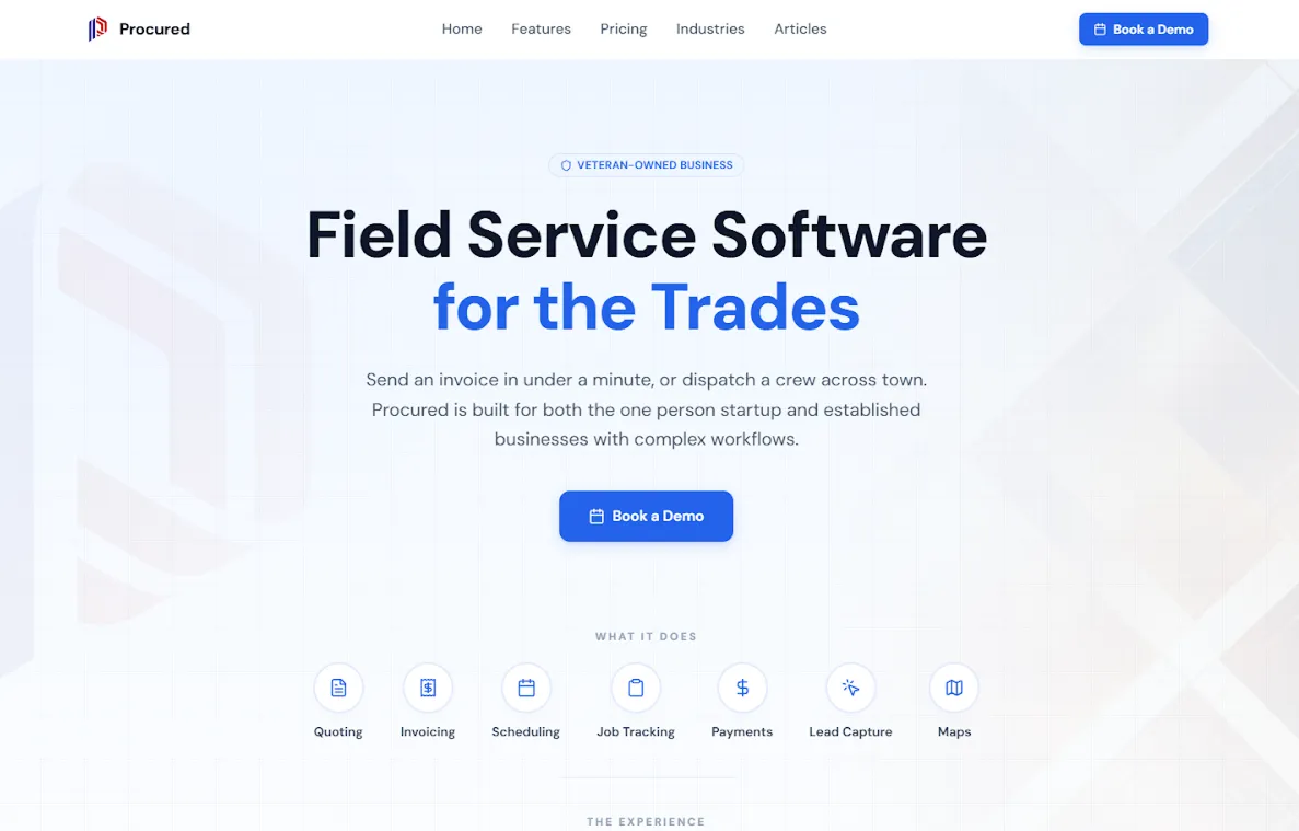 Procured is an all-in-one field service tool designed for contractors who want to manage quotes, jobs, scheduling, and invoices in one place. It focuses on speed and simplicity so contractors can handle paperwork quickly and get back to the job site.