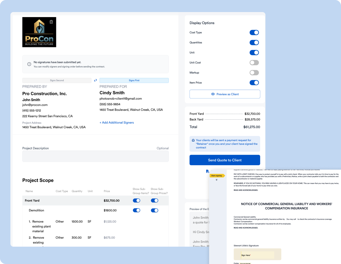 - Automate change order tracking so all extras are billed properly.