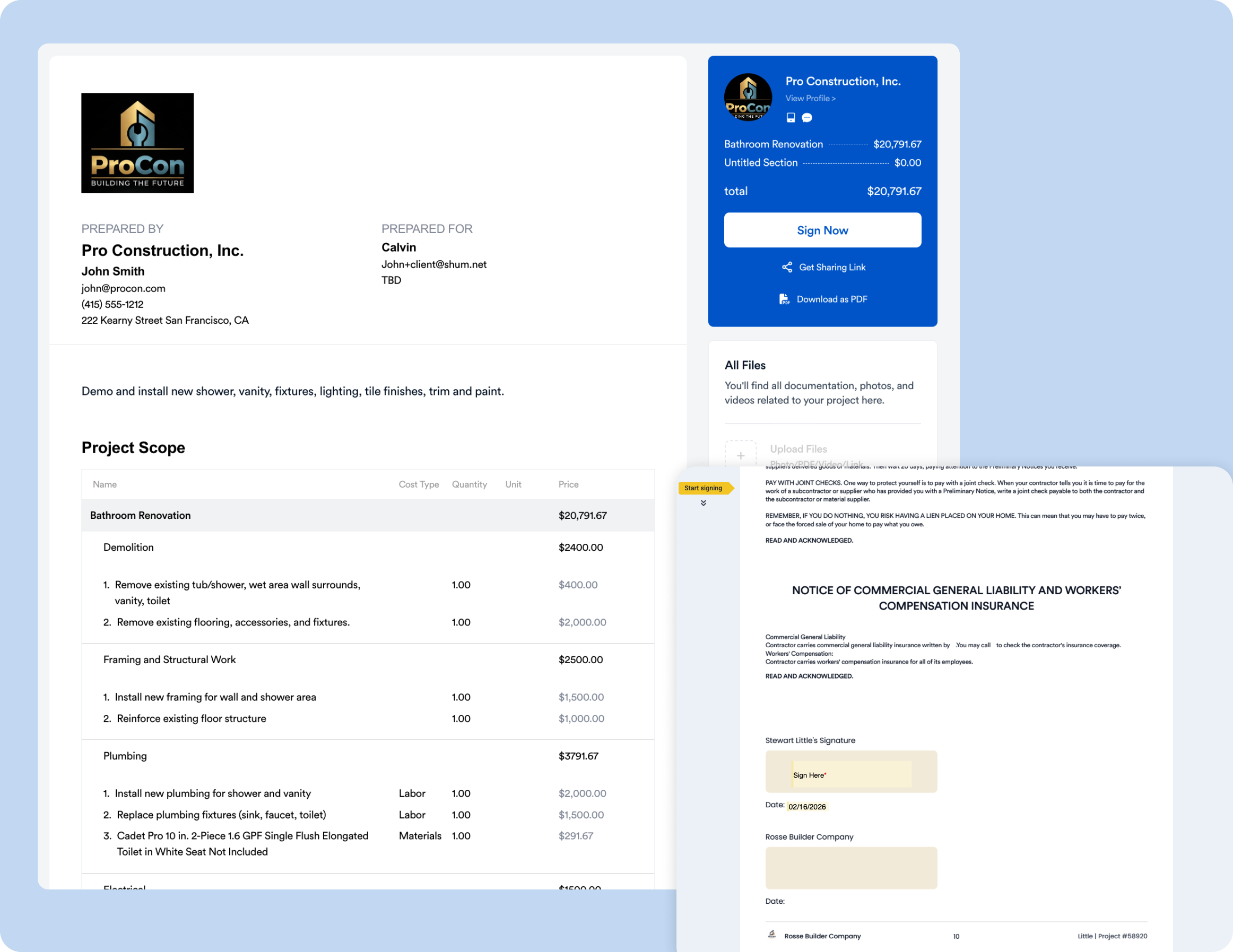 Professional Proposals with Contracts and eSign