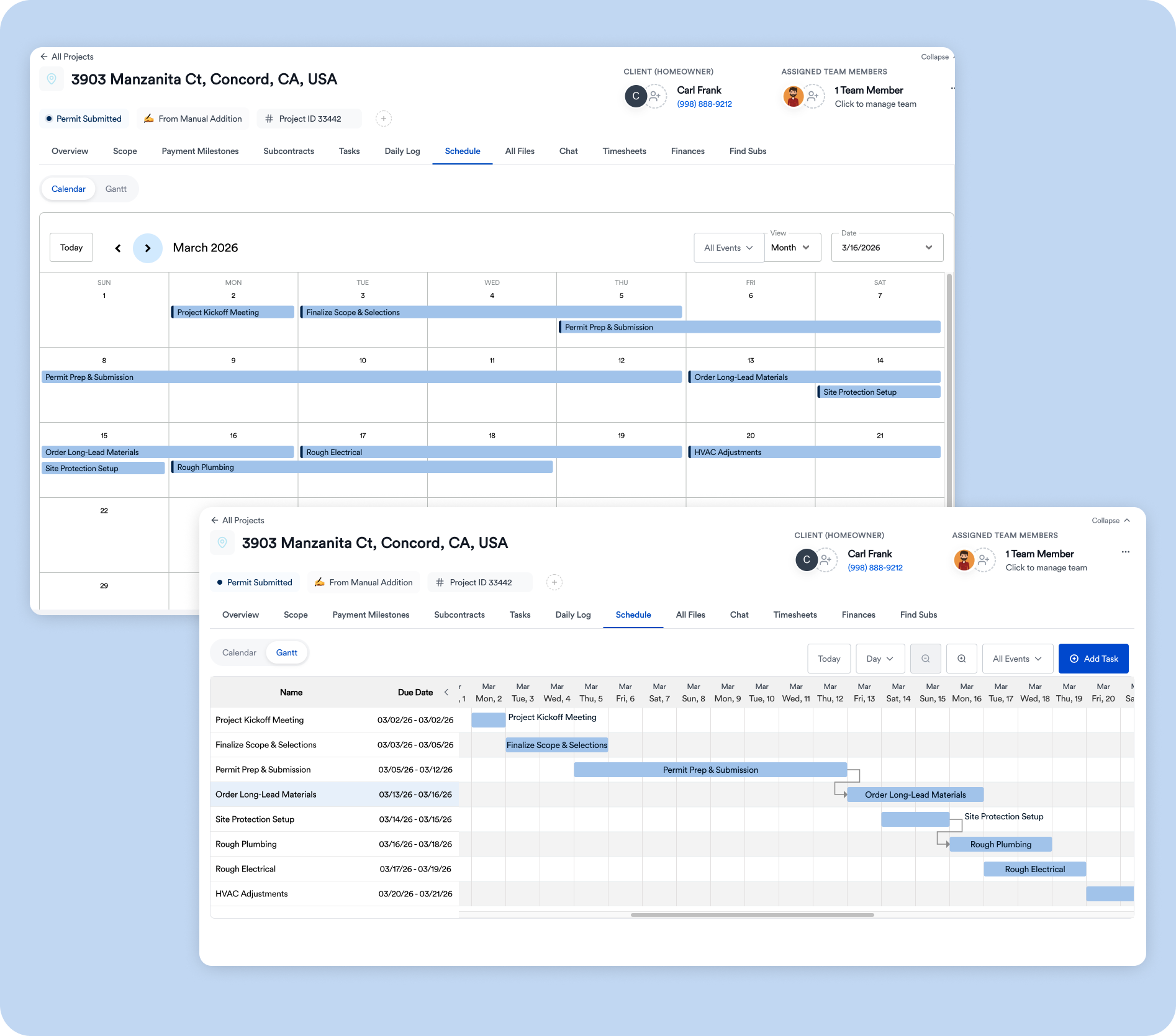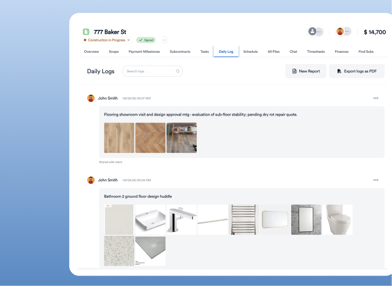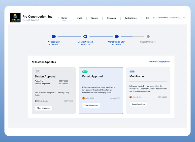Provide homeowners with visibility into project progress, approvals, and payment schedules.
