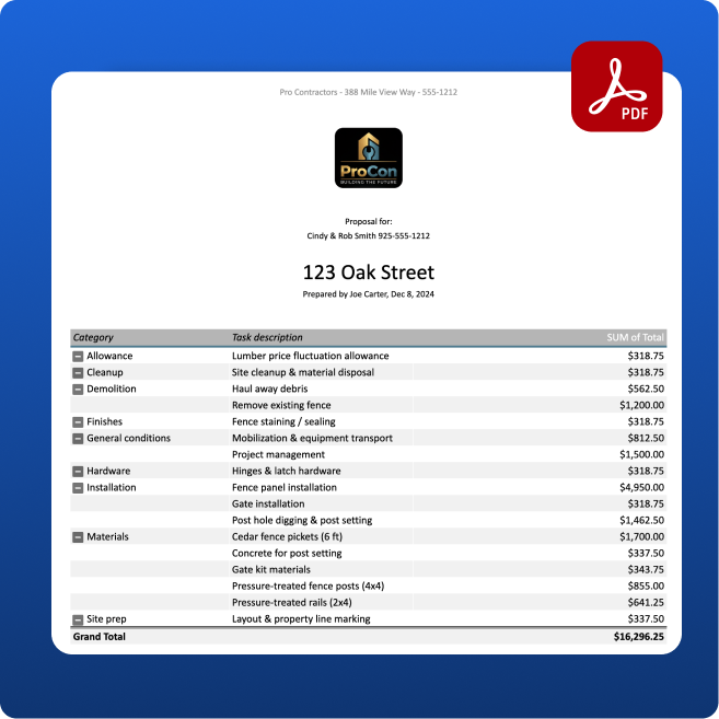 When homeowners compare fencing quotes, presentation matters. A clean, organized estimate immediately communicates professionalism.
